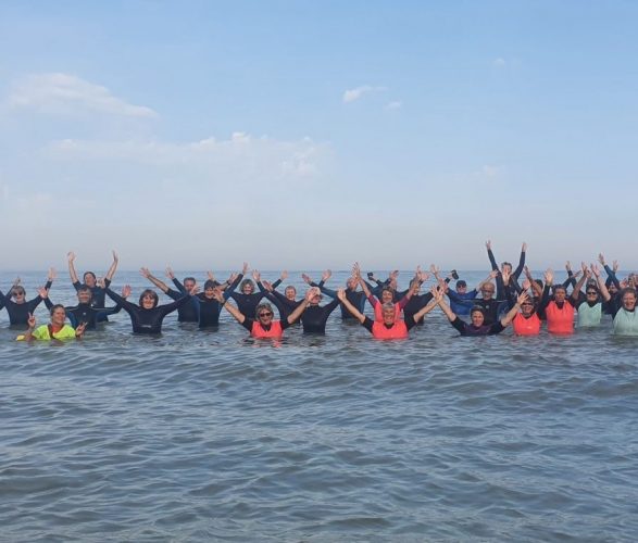 Le longe-côte allie sport, bien-être et convivialité en marchant dans l’eau au rythme des vagues, sur le littoral de Cayeux-sur-Mer